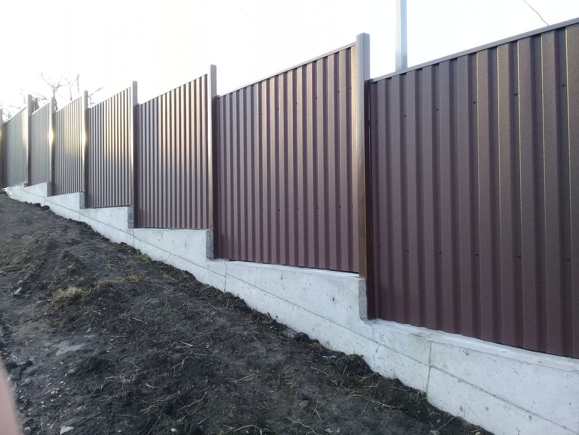 Для участков не более 10 соток подойдет забор из евроштакетника, а для более обширных территорий идеально подойдет ограждение из профнастила (металлопрофиля).